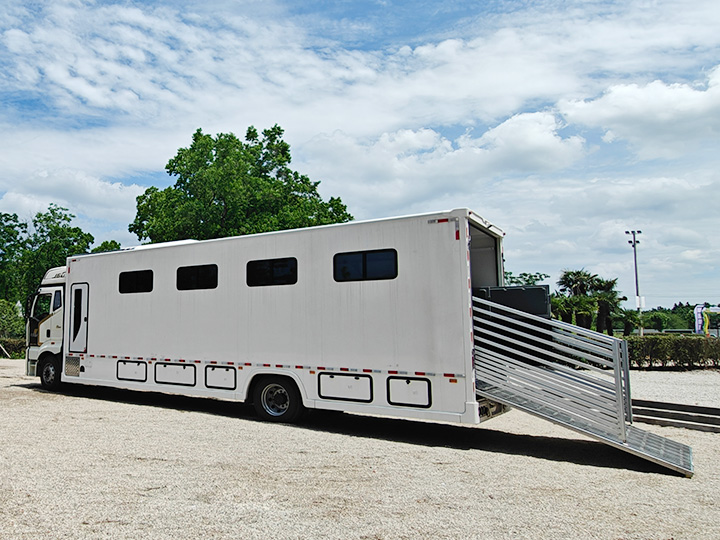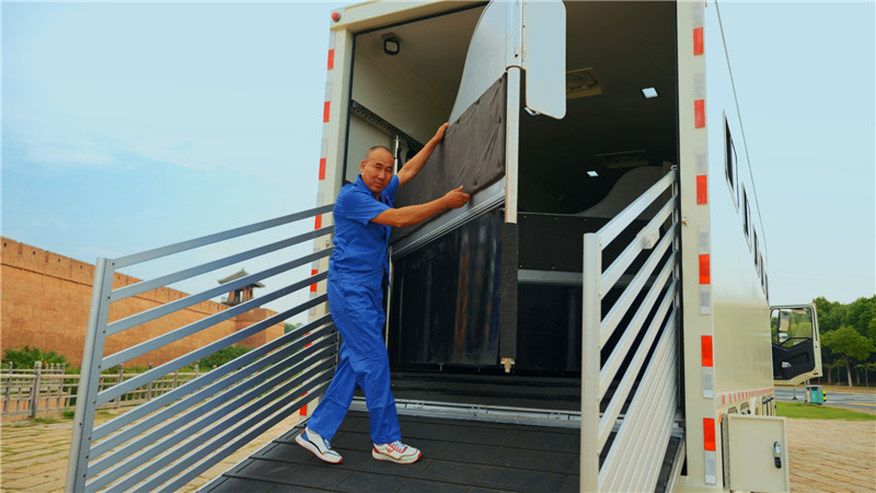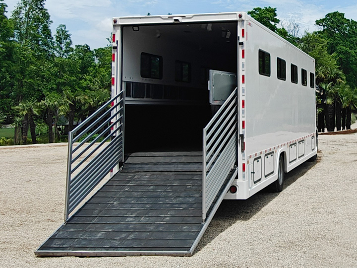 | 液壓門系統(tǒng) | 天順牌產(chǎn)品:液壓后翻門,采用延時(shí)電機(jī),帶緊急手動(dòng)操作裝置,箱體尾部有液壓升降踏板,方便馬匹上下(內(nèi)部鋁合金),軍用品質(zhì)液壓系統(tǒng)(海格曼),坡度平緩 |