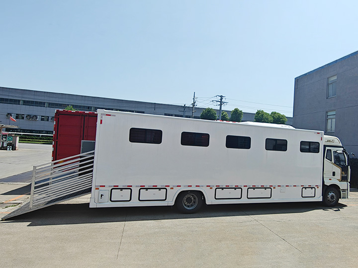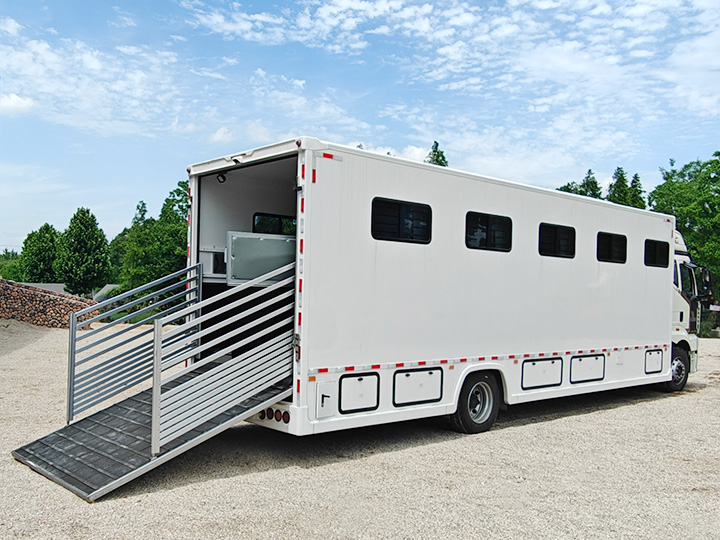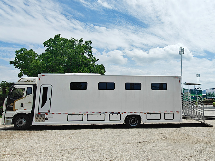 | 側(cè)窗 | 房車級(jí)別雙層鋼化玻璃窗戶,馬區(qū)域尺寸500*1200,人員區(qū)域尺寸略小一些,茶色,含防止馬頭探出不銹鋼防護(hù)欄 |