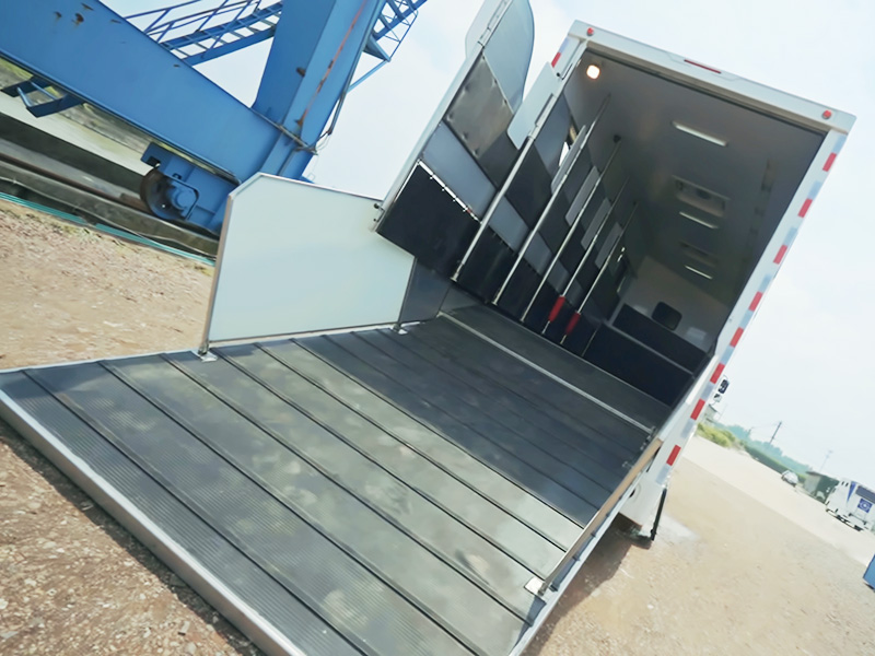 | 液壓門系統(tǒng) | 天順牌產(chǎn)品:液壓后翻門,采用延時電機(jī),帶緊急手動操作裝置,箱體尾部有液壓升降踏板,方便馬匹上下(內(nèi)部鋁合金),軍用品質(zhì)液壓系統(tǒng)(海格曼),坡度平緩 |
