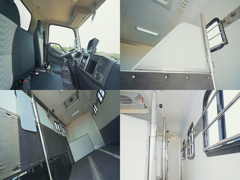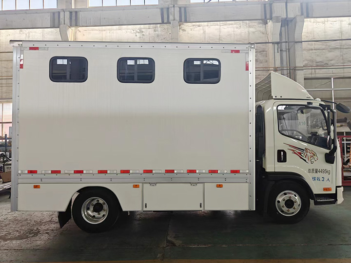 | 側(cè)窗 | 房車(chē)級(jí)別雙層亞克力窗戶,尺寸400*600,人員區(qū)域尺寸略小一些,茶色或者無(wú)色,含防止馬頭探出不銹鋼防護(hù)欄 |